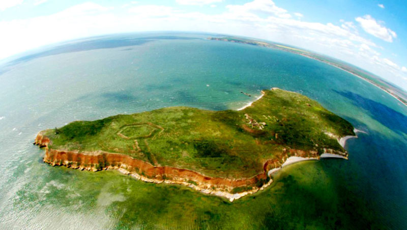 Острів абсолютно безлюдний, більше того, на ньому немає ні дерев, ні кущів. Однак це він сьогодні такий, адже за свідченнями археологів безлюдним він був далеко не завжди. Так в північно-східній частині острова в кінці минулого століття археологи відкрили саме древнє на території СРСР поселення греків, основане в VII столітті до нашої ери, - місто борисфенитів, подібний Ольвії та іншим давньогрецьким містам, що з'явилися у Північному Причорномор'ї значно пізніше (в V- VI ст. до н.е.). Острів оголошений археологічним заповідником.
