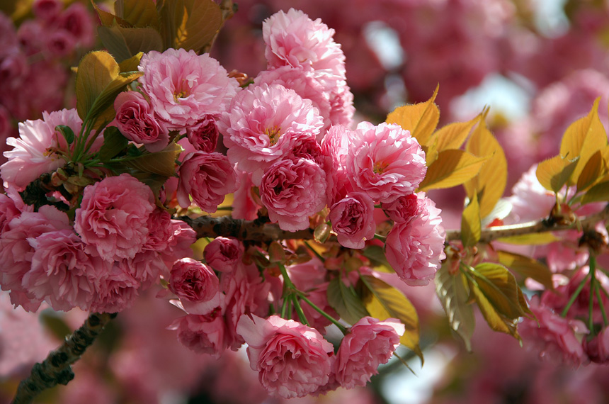 Майже одночасно з сакурами зацвітають магнолії, рожеві, білі і фіолетові, розпускаються квіти японської айви і яблунь.