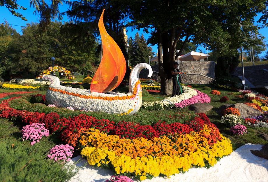 Нинішні квіткові творчі роботи виконані в тематиці "Ілюзії осені" в просторово-об'ємних експозиціях. Зокрема, зеленбудівці Дарницького району створили "Золоту чарівницю" і використовували більше тисячі хризантем, а композиція "Барвистий подарунок осені" Шевченківського району складається з 2,5 тисяч квіток.