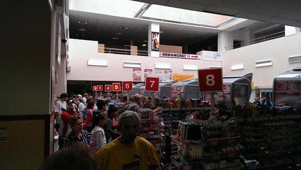 Черги пояснюються і тим, що касири повинні видати людям здачу російськими рублями, але дрібних у них для цього немає.
