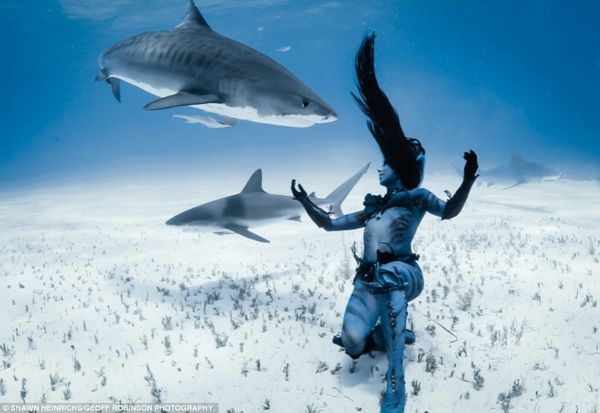 38-річна модель по імені Ханна Фрейзер (Hannah Fraser), покривши своє тіло боді-артом, опустилася на 15-метрову глибину Атлантичного океану, щоб взяти участь у незвичайній фотосесії з одними з найнебезпечніших акул у світі - тигровими. Ханна не використала жодного спорядження для дайвінгу, крім бікіні, чобіт і рукавичок, на дівчині не було ні маски, ні трубки, ні навіть ласт.