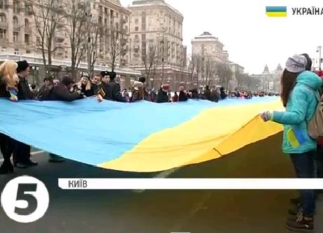 200-метрові прапори обох держав загалом несли ліцеїсти і студенти вузів, та до них приєднались і небайдужі кияни, повідомляє 5 канал.