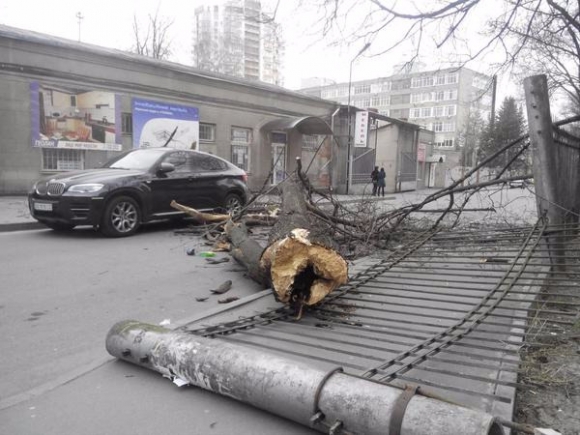 У суботу по Харкову пройшовся сильний ураган. Сильні потоки вітру зривали з дахів будинків металеві листи, ламали гілки дерев і рвали дроти. Також постраждали вивіски декількох магазинів.