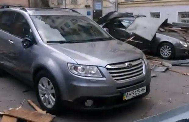 В результаті падіння покрівлі було пошкоджено чотири автомобілі.