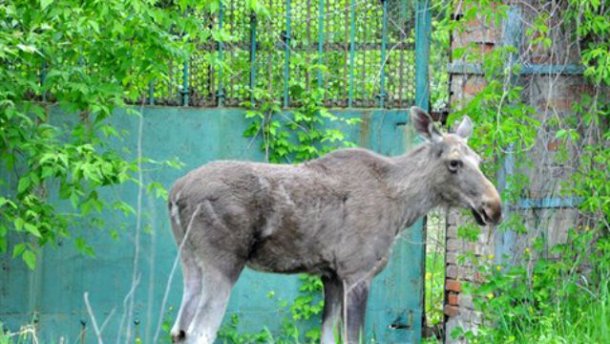 Сьогодні, 19 травня, практично в центрі Слов'янська, в районі вулиці Добровольського був помічений лось.