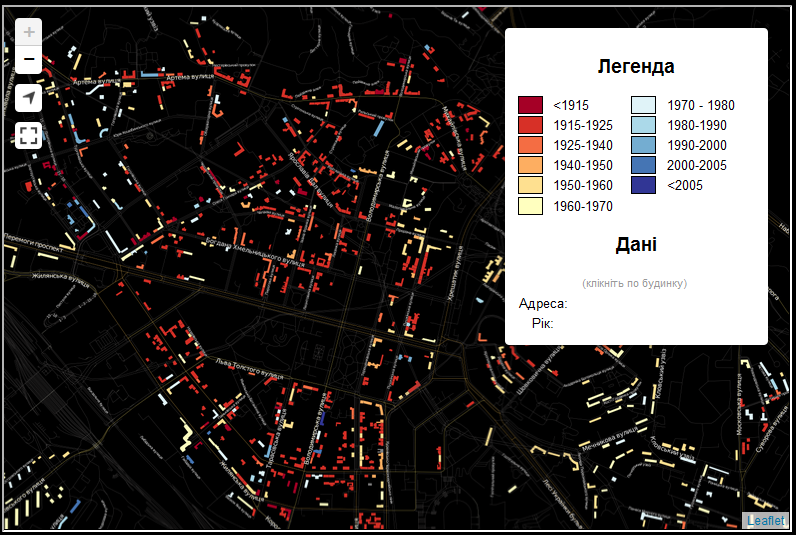 Активісти Влад Герасименко та Вадим Скляров спроектували інтерактивну карту з датами будівництва будинків у Києві.