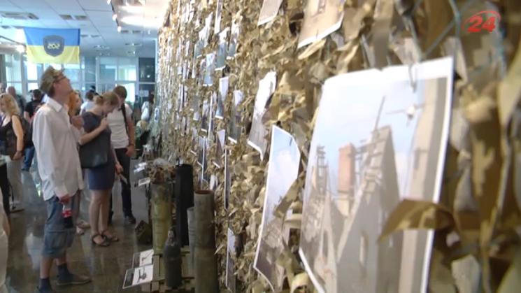 Ракети, гільзи, уламки гранатометів не на передовій, а у Києві. Вже в першу годину після відкриття виставки невеличке приміщення вщент заповнили люди, йдеться в сюжеті телеканалу "24".