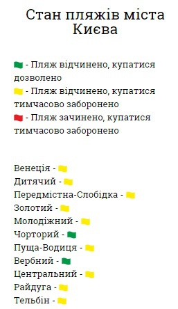 У Києві тимчасово заборонено купатися на пляжах "Райдужний", "Тельбін", "Дитячий", "Венеція", "Молодіжний", "Золотий", "Предмістна Слобідка", "Центральний".