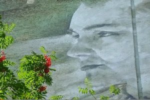 Це портрет активіста євромайдан Сергія Нігоян Сергій Гагікович. Він загинув 22 січня в протистояннях на Грушевського. У чорно-білих тонах обличчя героя України зобразив португальська художник Олександр фарт. Зізнається, події в Україні дали поштовх для творчості.