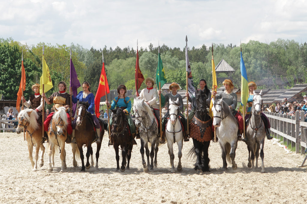 Вершники з дружини самого князя київського покажуть захоплююче кінно-трюкове шоу. Унікальну колекцію породистих коней історичних порід світу представить Княжа конюшня Древнього Києва. Відвідувачі зможуть покататися на княжих конях і сфотографуватися з ними.