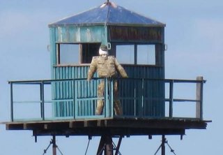 Ділянка російсько-китайського кордону з боку РФ, що проходить уздовж річки Амур, стереже одягнене у військову уніформу опудало.