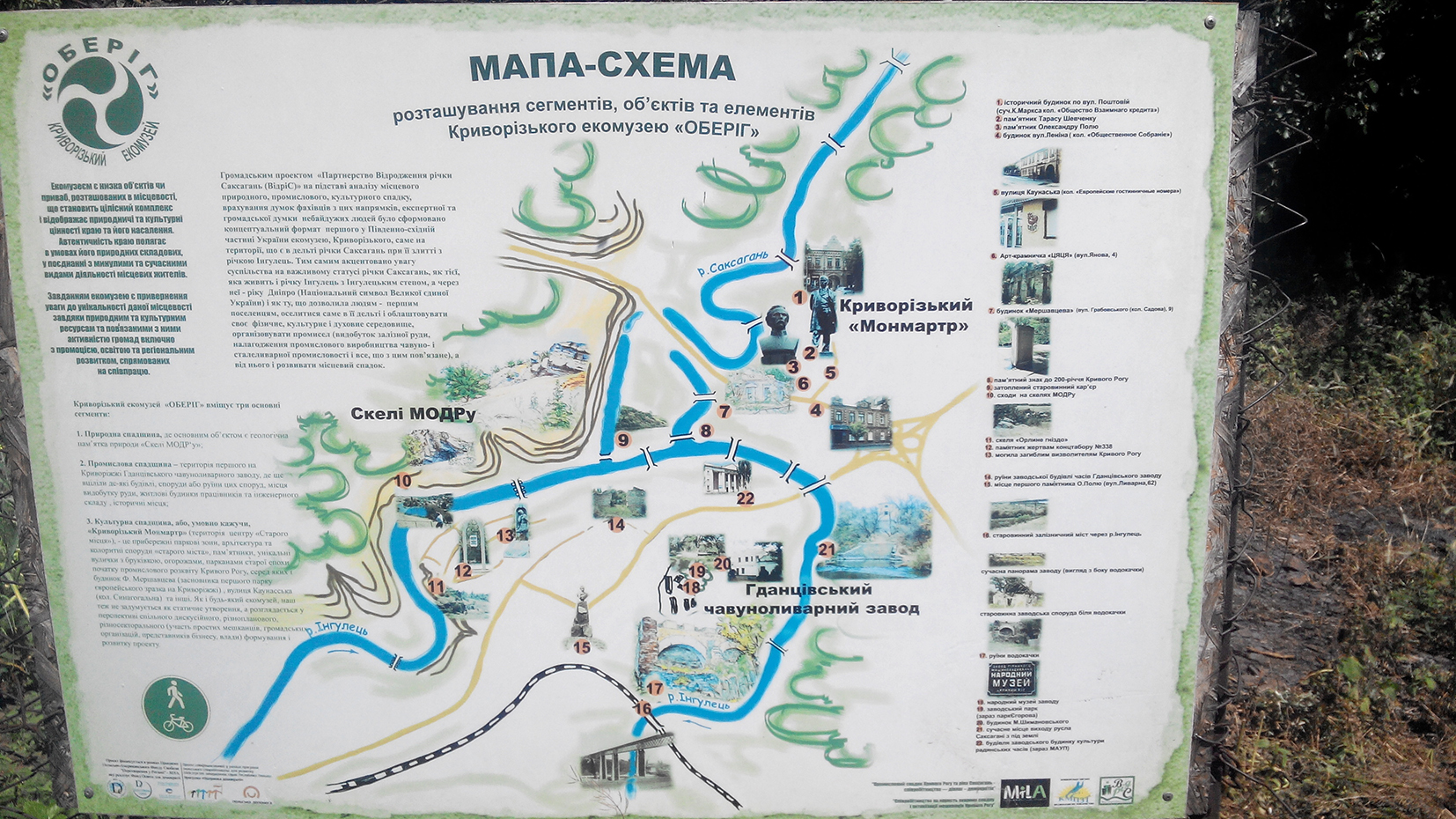 До території пам'ятки відносяться природні відслонення правого і лівого берегів річки Інгулець разом зі штучними оголеннями порід у затоплених дореволюційних залізорудних кар'єрах і в прорізі шосейної дороги.