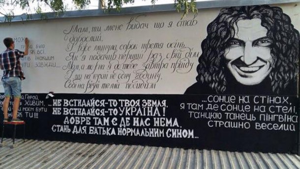 У розписі стіни взяли участь не професійні художники, а прихильники творчості Кузьми. Вони намалювали усміхнений портрет Андрія Кузьменка і уривки текстів з кількох його пісень.