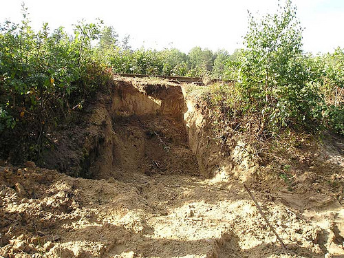 Копачі бурштину зробили кілька ям біля найдовшою в Європі вузькоколійки в Рівненській області.