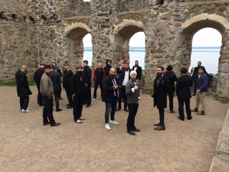 Глава шведської організації "Бородаті лиходії" разом з іншими членами організації влаштували фотосесію в зруйнованому замку з чорно-білим прапором організації.