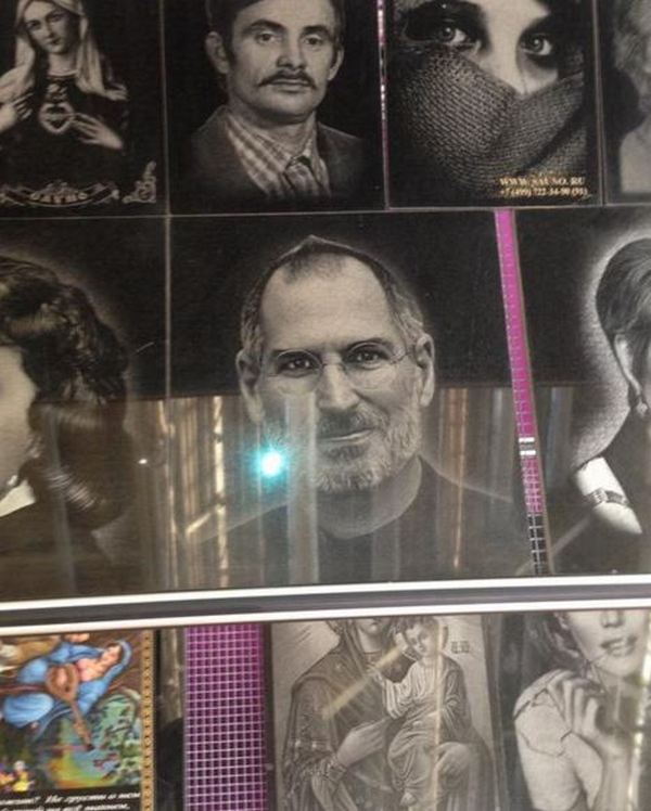 Серед інших, що привертають увагу експонатів, виявився надгробок із засновником компанії Apple Стівом Джобсом (помер у 2011 році).