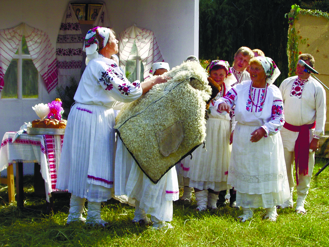 У книжці показано, як традиційний одяг використовувався в обрядах деяких сіл аж до середини ХХ ст. Зокрема представлено архаїчні функції ритуальних наміток в обряді «звоювання тура», дивовижних головних уборів весільних «свашок» на Волинському Поліссі; витончене серпанкове вбрання, пов’язування довгим «ручником» молодої на Рівненщині.