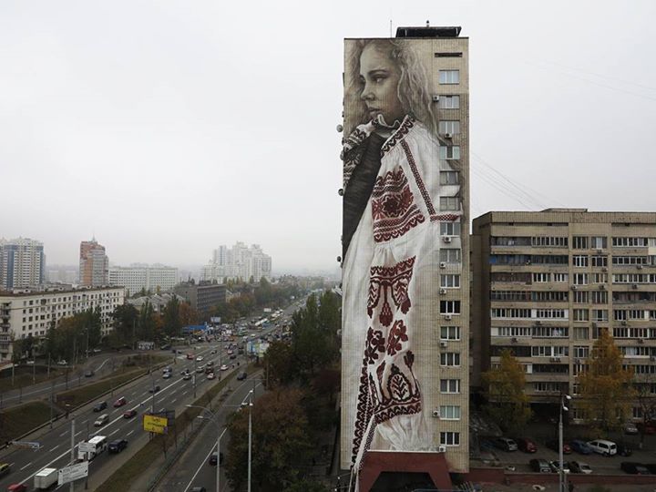 Відомий художник Гвідо ван Хелтен створив ще один мурал – графіті на будинку, що розташований на бульварі Лесі Українки, 36 в центрі Києва.