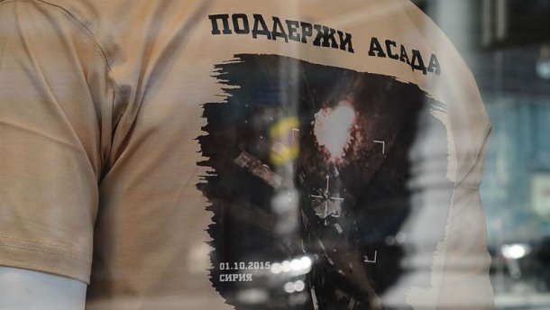 Як тільки почалися бомбардування в Сирії – з'явилися футболки із зображенням російського літака над картою Сирії і написом "Підтримай Асада", повідомляє "Настоящее время".