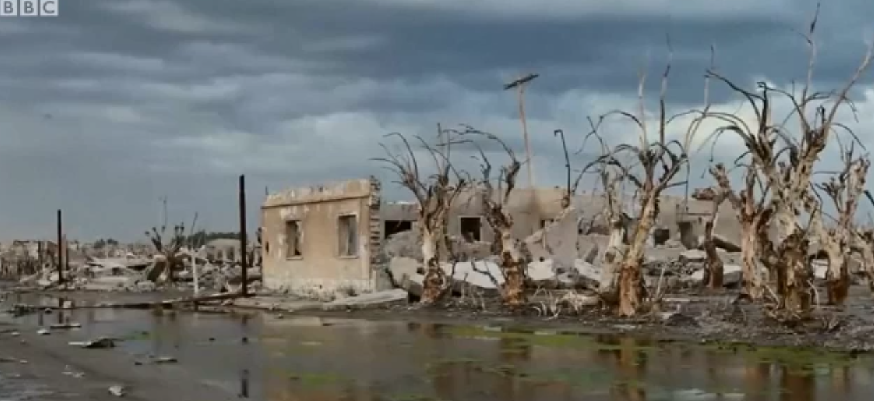 Однак тепер вода почала спадати і перед людьми постали моторошні руїни колись популярного курорту.