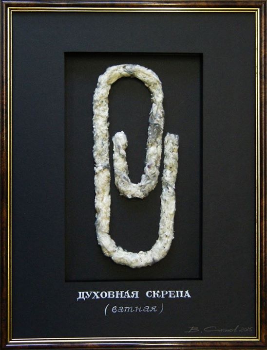 За словами художника, він зробив "духовний скреп" з ниток і вати формату 30х40 см.