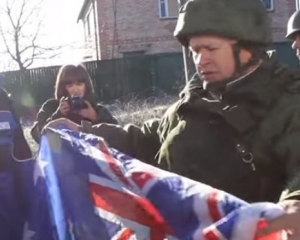 "Доказами" послужили прапори Австралії, США, ЄС і прапор України "з польського чобота", які бойовики нібито знайшли в окопах і бліндажах ЗСУ.