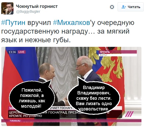Той факт, що президент Росії Володимир Путін нагородив державними нагородами РФ Геннадія Хазанова і Микиту Михалкова, викликав бурхливу реакцію у користувачів соціальних мереж.