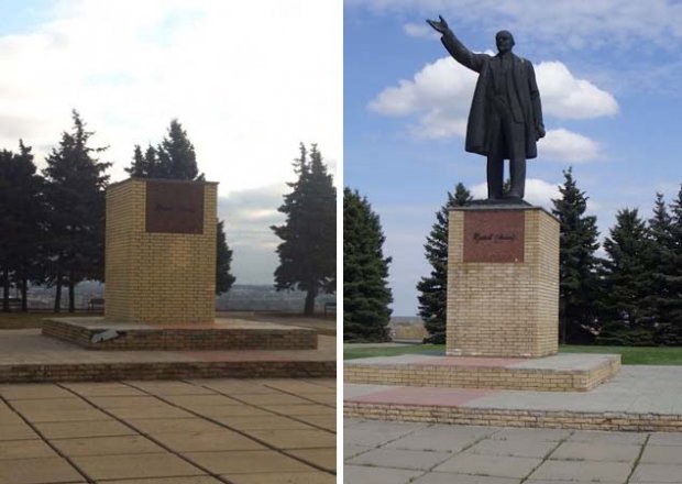 28 вересня 2014 року активісти тросами звалили найбільший в Україні пам'ятник Леніну на площі Свободи в центрі Харкова. Тоді ж мер Харкова Геннадій Кернес пообіцяв відновити пам'ятник Леніну "на тому ж місці". Зараз над порожнім постаментом встановлено прапор України, а на фасадній частині - зображення Пресвятої Богородиці.