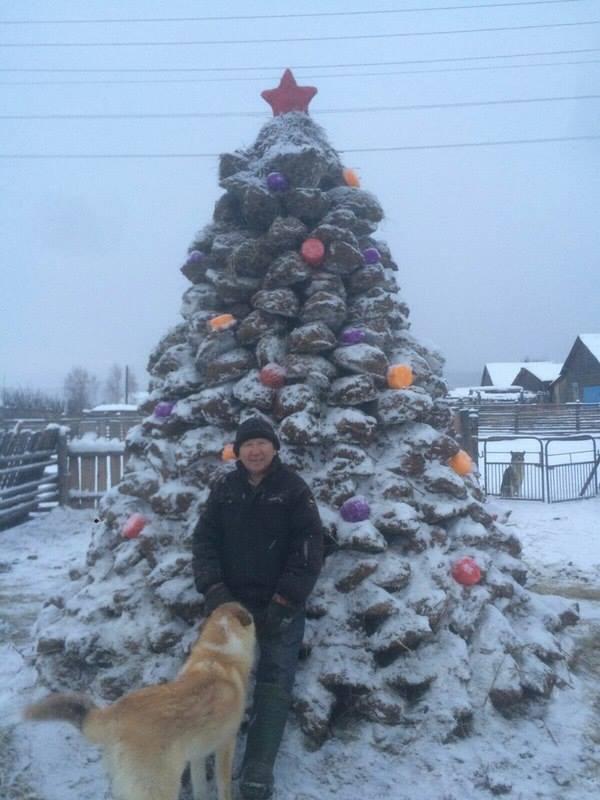Жителі Якутії РФ напередодні Нового року спорудили собі «новорічну ялинку» з підручного матеріалу – гною. «Гнойову ялинку» прикрасили ялинковими іграшками, а зверху поставили традиційний атрибут радянських часів - червону зірку.