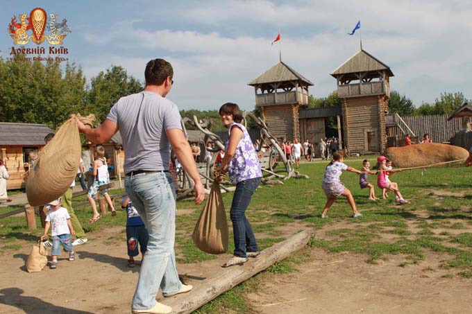 А далі на головному ристалищі Древнього Києва розгорнеться програма, у якій всі бажаючі зможуть випробувати власну силу, спритність, влучність. На гостей Парку чекає така серйозна чоловіча розвага як метання колоди. А до змагань із перетягування канату чи боїв на мішках уже запросять і представниць прекрасної статі, і юних гостей Древнього Києва.