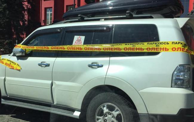 Автомобілі "героїв парковки" обмотали стрічками зі смішним написом