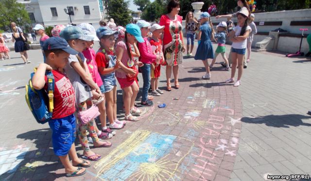 У Севастополі 1 червня проходять святкові заходи до Дня захисту дітей, в ході яких діти малювали на асфальті свої малюнки, вибираючи кольори українського прапора.