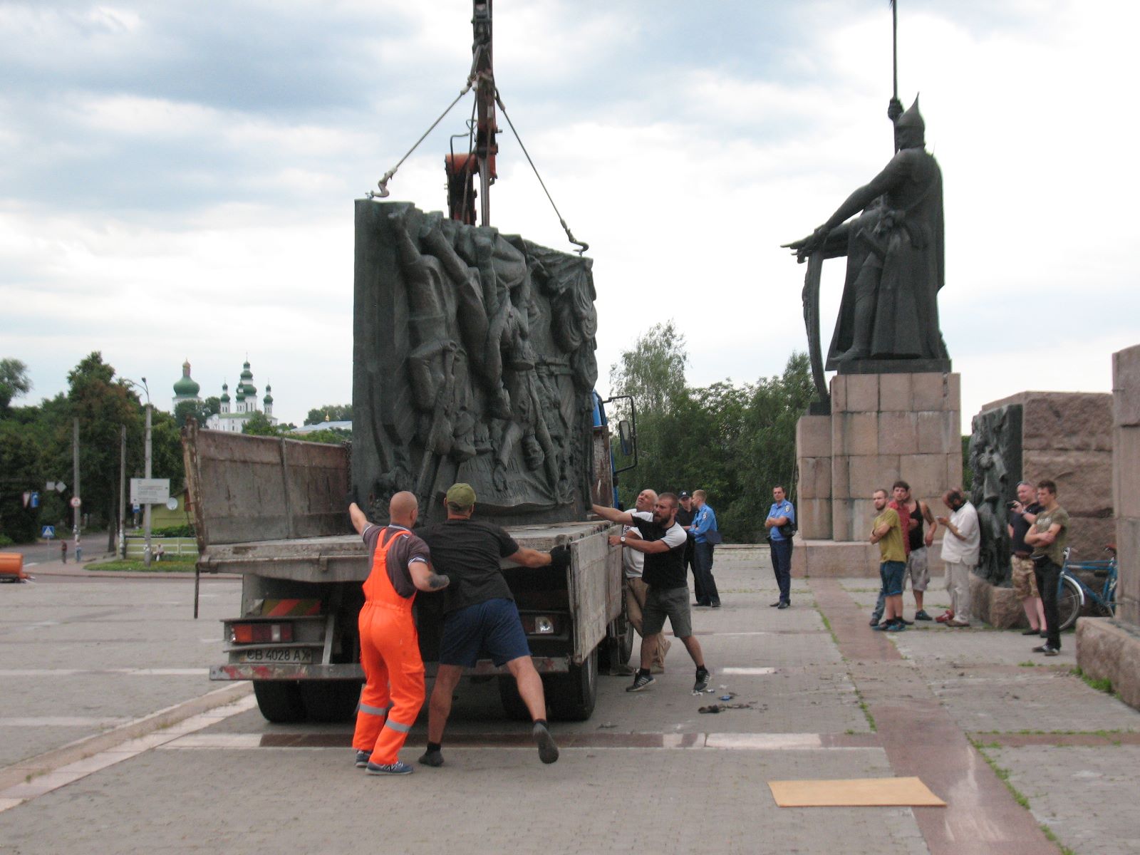 "Операція "барельєф" завершена. Комуністичні символи на вимогу громадськості Чернігова з Болдиної гори демонтовані", - йдеться у повідомленні.