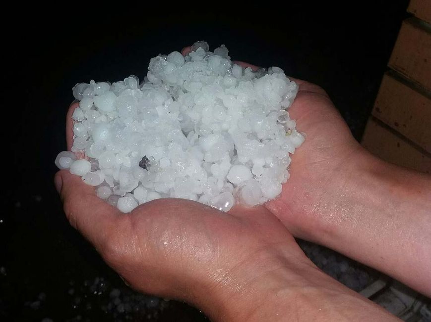 Негода тривала близько години. Власники автомобілів скаржаться, що град пошкодив лако-барвисте покриття на машинах.