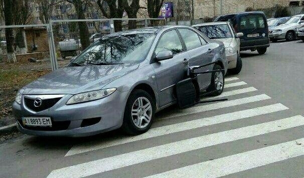 У Києві нахабний водій припаркував свій автомобіль на пішохідному переході.