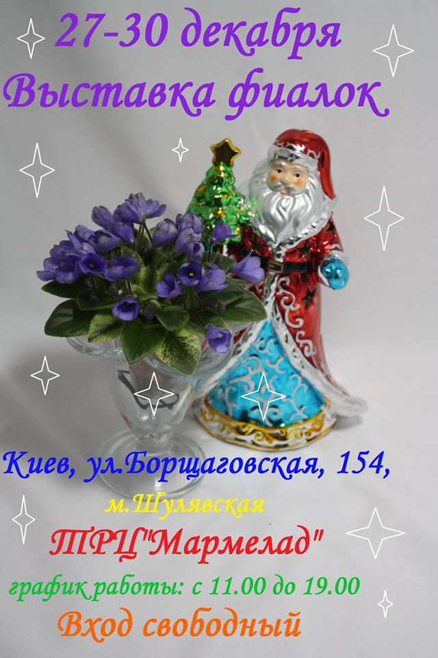 Запрошуємо киян та гостей міста на виставку колекційних фіалок в Києві з 27 по 30 грудня 2016 р.