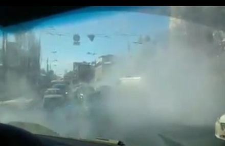 Через прорив на ділянці магістрального трубопроводу, вода розлилася по проїжджій частині, що значно ускладнило автомобільний рух. Також клуби пара, які виходять від розлитого окропу, обмежують видимість на дорозі.