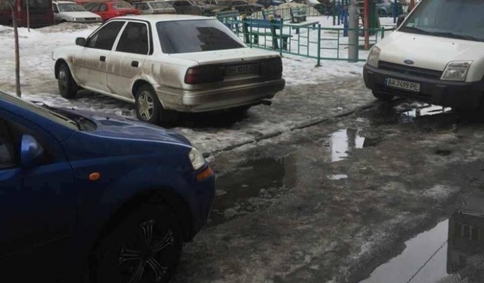 "Вчора відзначився герой парковки на Троєщині. Викликали поліцію, яка розвела руками і сказала, що нічого не може зробити", - підписав фотографію автор публікації.