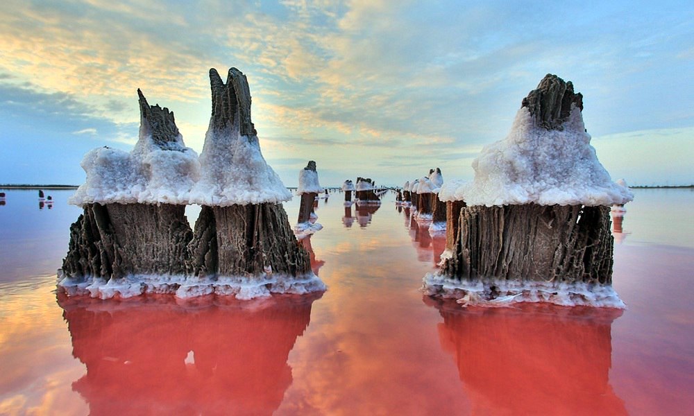 Вода в озері дуже солона і має рожевий колір. Вчені підтвердили, що велика кількість мінералів у воді Сиваша роблять її лікувальною.