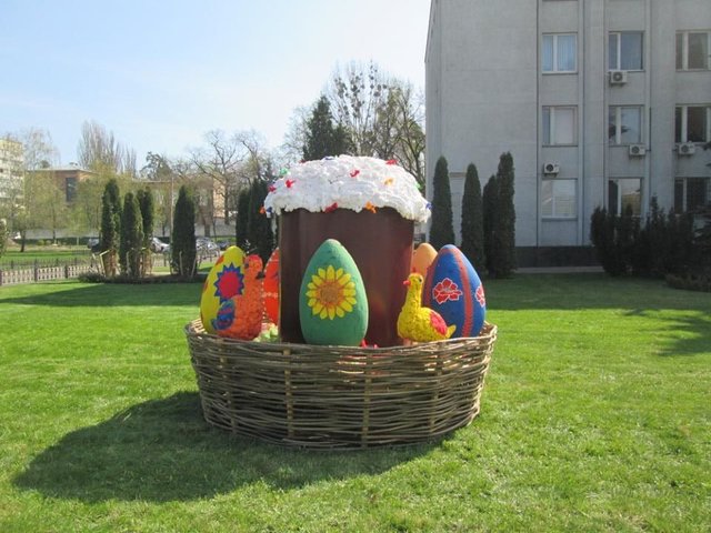 Співробітники Святошинського зеленбуду перед Великоднем встановили біля районної адміністрації новий арт-об'єкт.