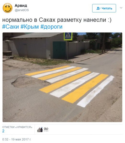 «Весь Крим в цьому фото - лоск поверх г * вна ... Яма завадила кримським дорожникам правильно нанести розмітку», - зазначив користувач.