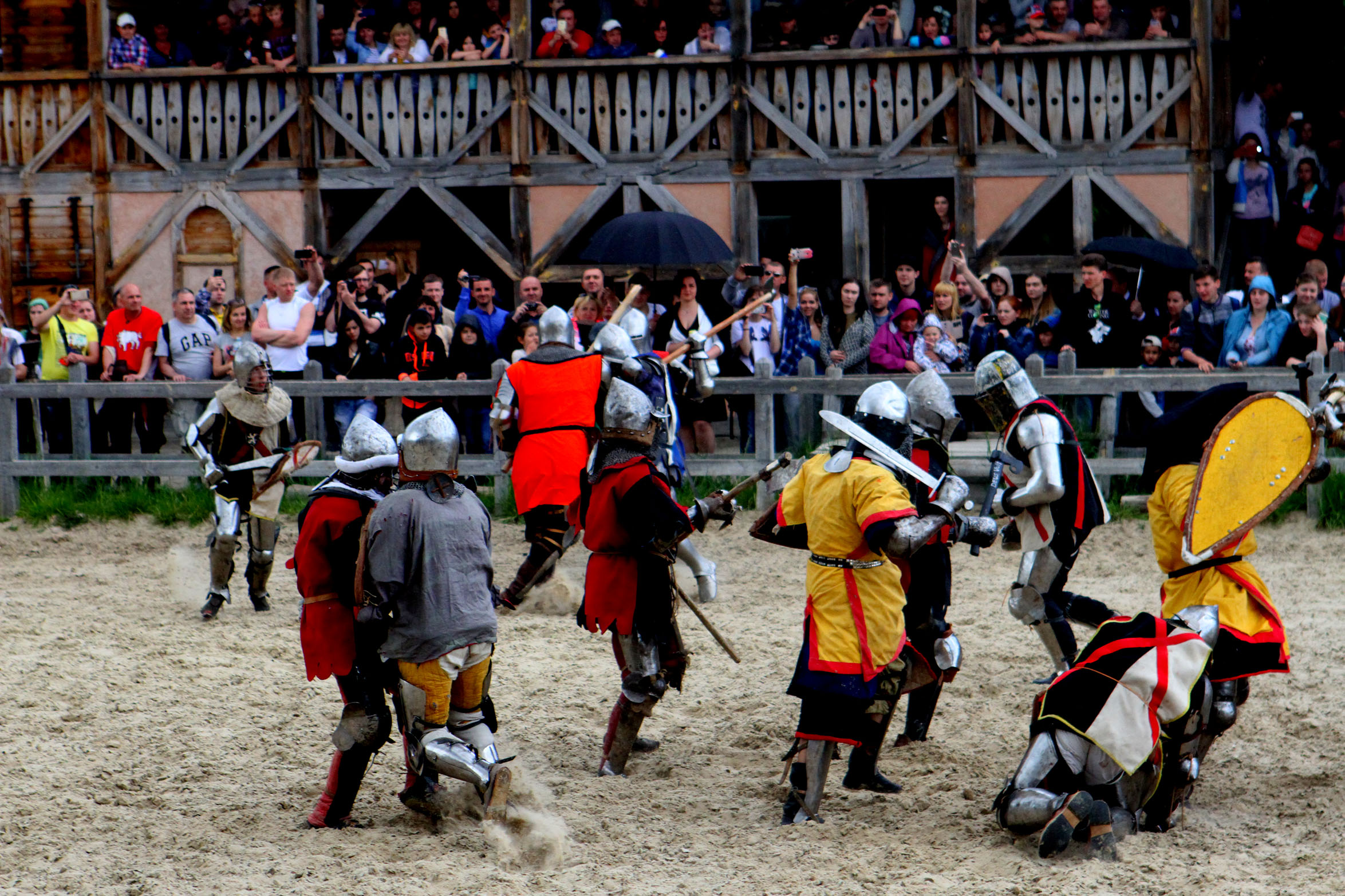 Середньовічний бій представляє собою доволі популярний та розвинений вид спорту в Україні, що поєднує в собі різні напрямки бойового мистецтва, а також культурно-історичну складову. Усі учасники чемпіонатів одягнені в такі ж обладунки, які носили воїни за часів Середньовіччя, і воюють такою ж зброєю - справжніми мечами, алебардами, фальшіонами.