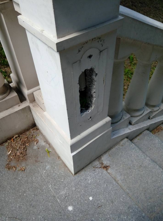 Та уся краса тухне після того, як в очі кидаються такі от діри у колонах сходів.