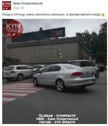 "Коли в п'ятницю уже захотілося винця, а припаркуватися ніде", - йдеться у підписі до фото.