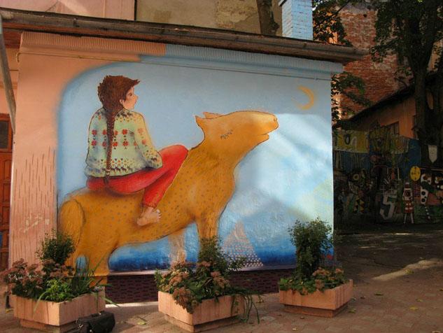 Першим об'єктом митців стала стіна однієї з найпожвавленіших трамвайних зупинок у центрі міста. Згодом на прохання Першого українського театру для дітей та юнацтва митці прикрасили також вхідну браму до цього закладу, яка спонукає глядачів до творчості та фантазії вже на підходах до храму Мельпомени.