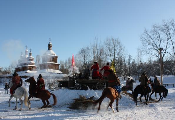 «Козаки «Мамаєвої Слободи» святкують перемогу козацьких полків Богдана Хмельницького над загарбниками. Ця битва названа ще «Дрижопіль» і відбулась 19-22 січня 1655 року на Черкащині на великому полі біля села Охматів (Жашківський район). Дрижопільська битва була однією з найбільш кривавих та найлютіших битв періоду визвольної війни під проводом Богдана Хмельницького. Втрати обох сторін склали близько 30 000 вояків. Реконструкція подій січня 1655 року відбудеться на ярмарковому майдані «Мамаєвої Слободи» у вигляді бою козацького та польсько-татарського підрозділів», - повідомили організатори реконструкції.