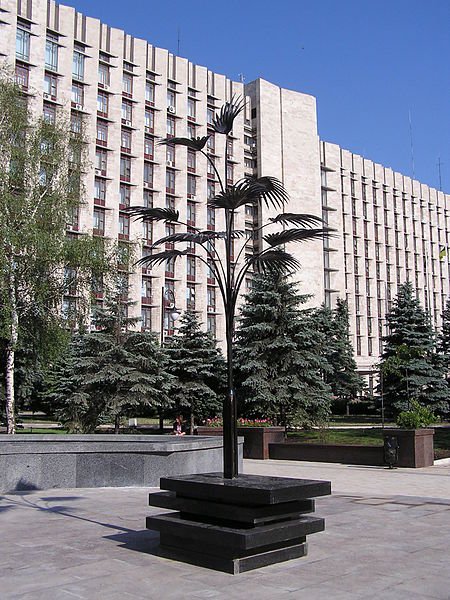 Пальма Мерцалова (викували з цілісного шматка рейки) біля облдержадміністрації: