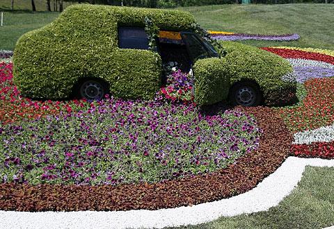 Темою виставки автори хотіли показати цікаве дизайнерське рішення з використанням автівок та рослин. Крім газонного рулону, були використані колеус, альтернатера, цинерарія тощо. Усього задіяно близько 600 тисяч квітів і близько 2 кв. м. газону на 2,5 кв. м. виставкової території.