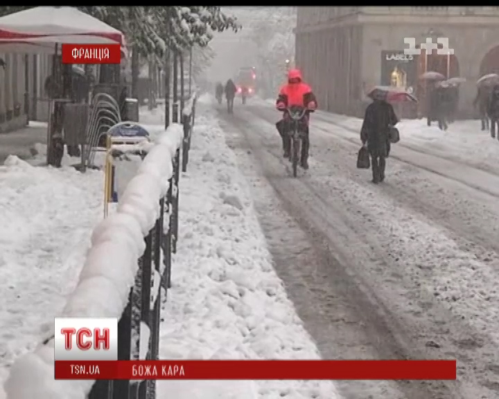 Зима для Франції розпочалася несподівано. Південний схід країни за ніч накрило 40-сантиментровим шаром снігу, йдеться в сюжеті ТСН.19:30.