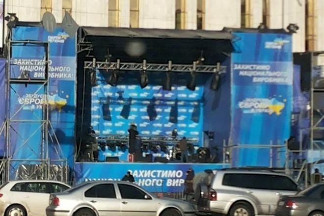 Колона автобусів виїжджає з Міжнародного виставкового центру на Голосіївський проспект у бік центру. На кожному з автобусів є табличка з назвою міста, а в середині автобусів знаходяться молоді люди в синіх шапках з написами "Партія Регіонів", пише Сегодня. Близько тисячі осіб приїхали в Київ з Севастополя "для підтримки конституційного ладу, законності і порядку".